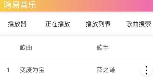 隐易音乐app安卓版是一款十分不错的音乐播放器,软件中拥有各中类型的歌曲,用户能够通过这款软件来进行喜欢的音乐搜索,海量的歌曲种类也十分丰富,喜欢的话就来下载使用吧。