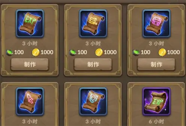 在萨满小屋里,你一共可以制作5种卷轴,每种卷轴有残旧(蓝)-神秘(紫)-传奇(橙)三种品质,卷轴品质越高,卷轴的效果越好。