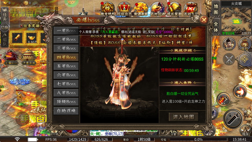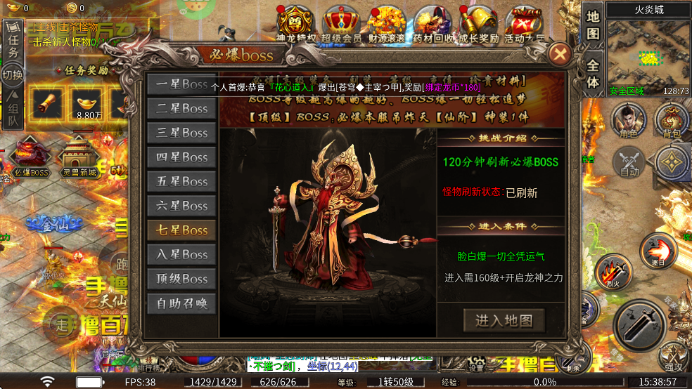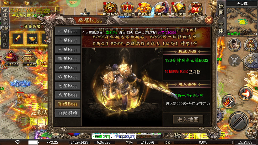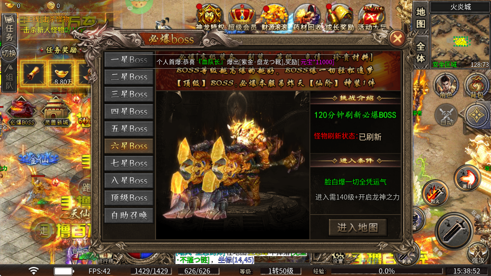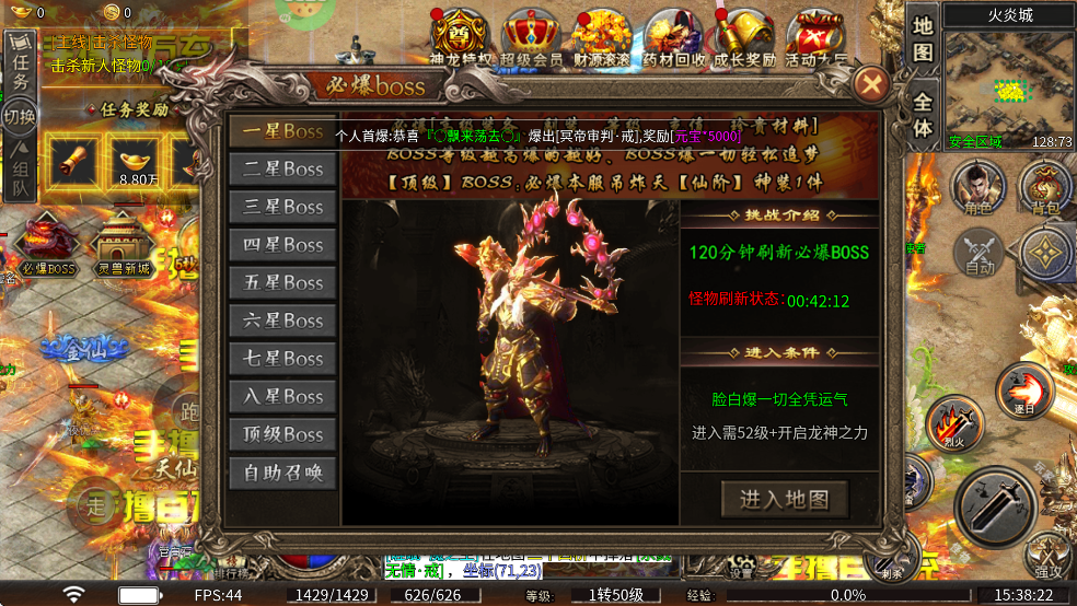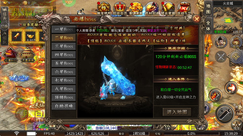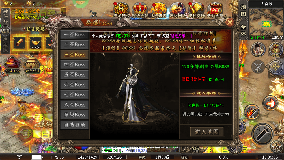 九州霸业0.1折传奇手游boss攻略