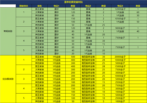 赛季结算对比奖励