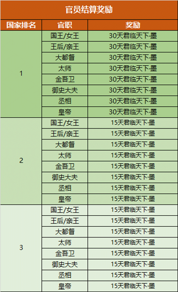3、在当前阶段有一个国家被一统后,本阶段结束,休赛期(2天)结束后开启下个阶段的征战;