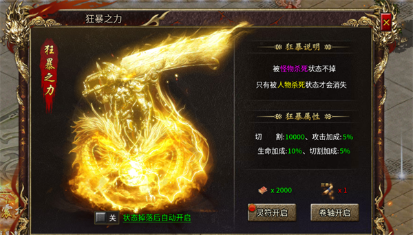 狂暴属性:切割10000、攻击加成5%