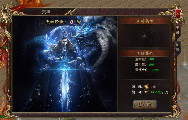 天神(对怪免伤):消耗天地晶石+元宝进行升阶