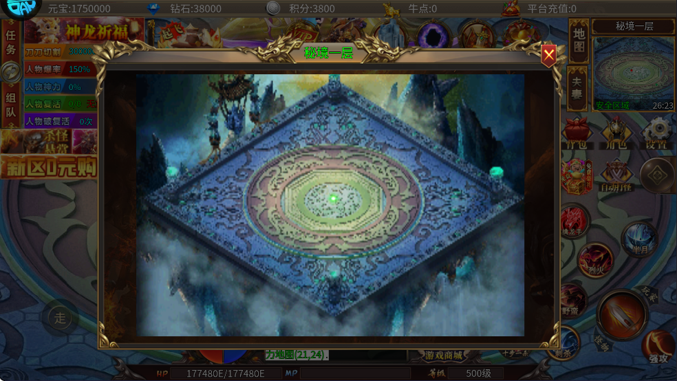 玩法介绍:全服BOSS地图,每层有八只,一共有5层,BOSS可爆专属装备和合成神器必须的大秘境结晶!