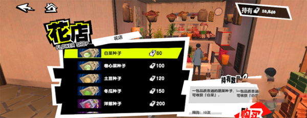第二个方式就是在地铁那里,地铁当中有一个地下商场,可以在地下商场的花店当中进行购买的,花店里面有大家所需要的种子,当然也有其他的东西,比如说鲜花,如果有些食材短缺,在这里也是可以买到的。