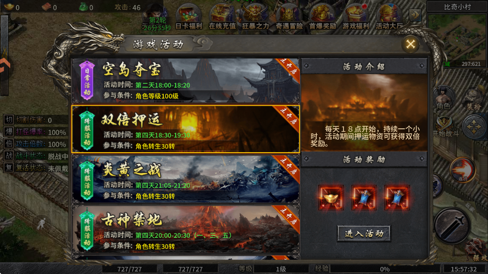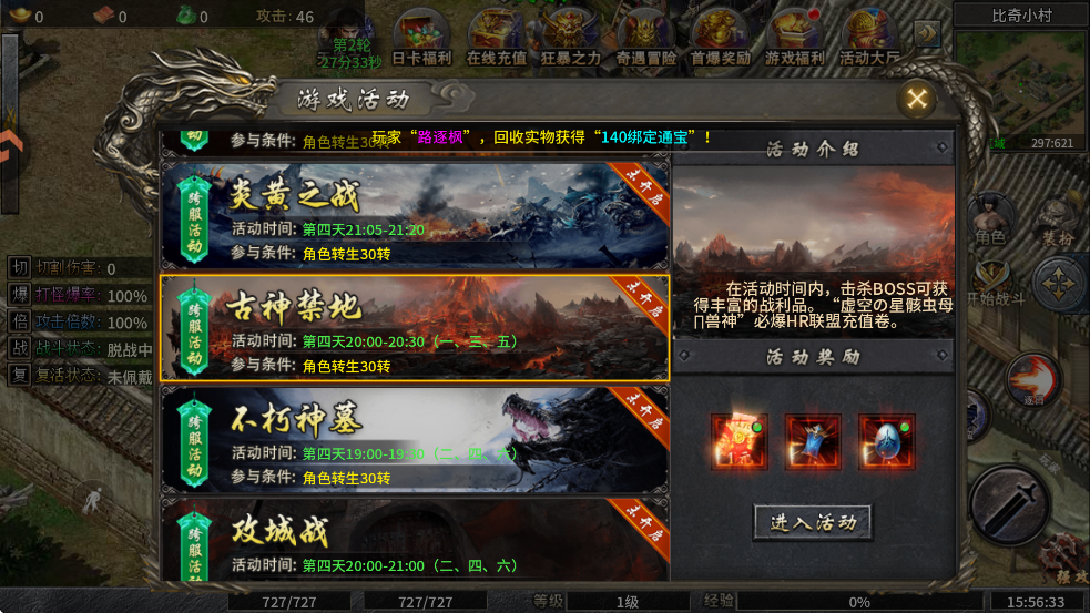 在活动时间内,击杀boss可获得丰厚的战利品。