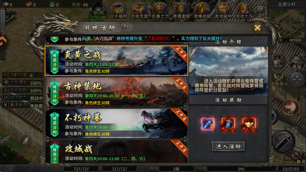 进入活动随机获得炎帝阵营或黄帝阵营,击杀敌对阵营玩家将获得阵营积分奖励!