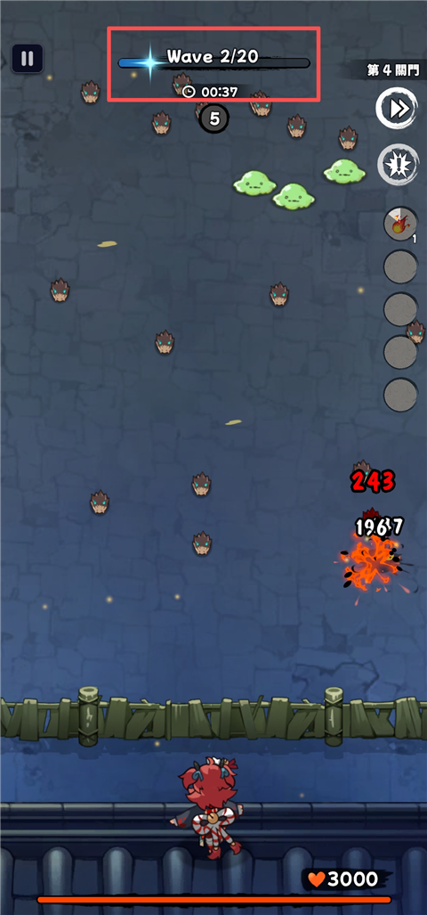 3、界面上方的数值清晰展示了当前敌人波次以及关卡的总波次数,方便玩家掌握战斗进度。