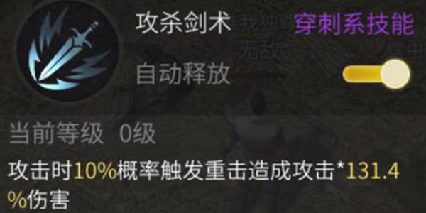 基本剑术/攻杀剑术:战士的初始技能与基础技能,被动强化战士的普通攻击。