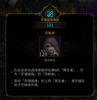 为减少玩家的培养成本及试错成本,游戏内设置「灵魂链接」机制,系统会自动选择所拥有的全部英雄中等级排名第6的再生者作为贡献者,上阵的所有等级低于贡献者的再生者均会直接提升至贡献者的等级,且不受自身最大等级限制。