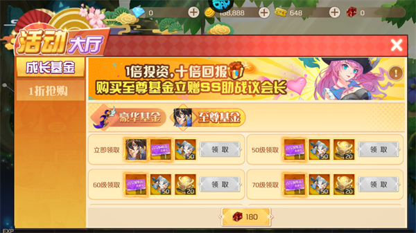 1倍投资,十倍回报购买至尊基金立赠ss助战议会长