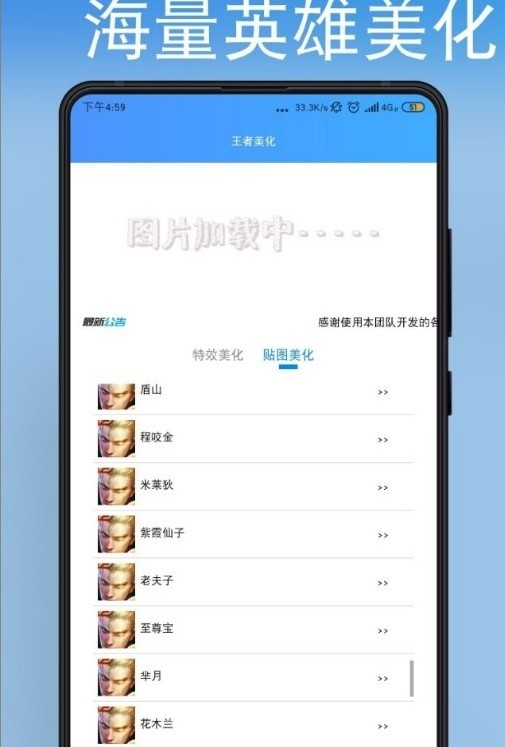 王者HERO美化包是专为广大王者荣耀玩家打造的游戏美化工具,这款软件能够帮您轻松的获取到游戏中所有的英雄皮肤,还能够帮您美化游戏地图,让您的地图变成各种节日地图,甚至还有着英雄皮肤自制功能,让您轻松无忧的畅玩游戏!