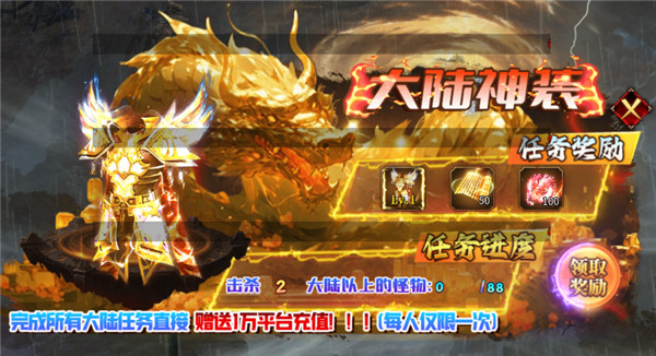完成所有大陆任务直接领取精品大陆神装雷。