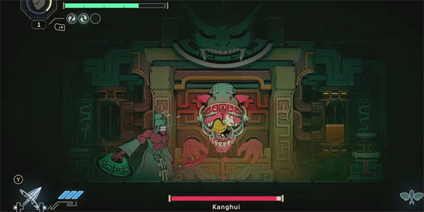 康辉是一个可怕的变异怪异“东西”,被一个可怕的装置活捉,永远刀枪不入。战斗的第一阶段,它会喷出肉质的团块,这些团块会变形成攻击你的小怪。当康熙血量只剩一半时,你可以用两侧的电脑来削弱它的剩余生命值。
