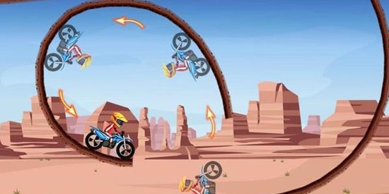 游戏中玩家将驾驶摩托车前往各个关卡场景内展开闯关冒险,其操作是比较简单,通过按左边屏幕控制摩托车减速,按右边屏幕控制摩托车加速,旋转设备则控制车的角度,我们要做的就是控制好摩托车尽快的通过精心设计的道路到达终点,完成闯关,虽然游戏操作玩法看起来简单,但是想要得到高分还是需要一定的技巧的。