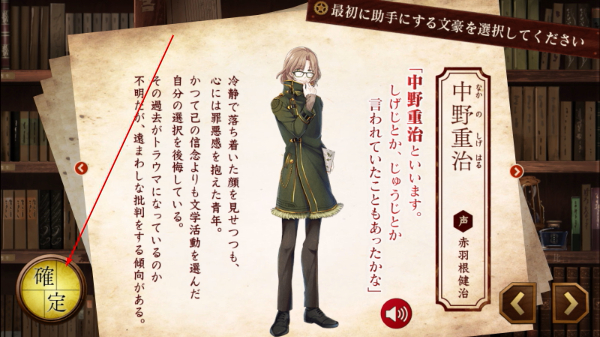 4、了解文豪角色的介绍后,点击确定按钮确认选择,完成角色相关的设定,正式开启游戏体验。