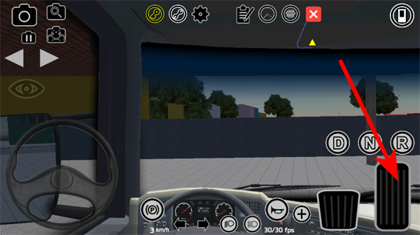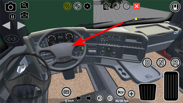 4、点击方向盘旁的方向标识,配合D挡前进、R挡倒车,精准控制卡车停车或完成转向操作。