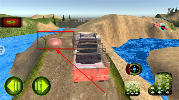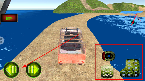 2、驾驶卡车沿山路与海岸地形行驶,方向键控制车辆,规避沿途障碍,保持车身稳定。