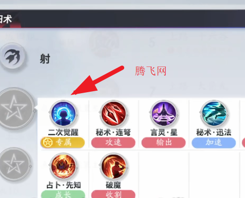 3.在阴阳术面板顶部找到“觉醒类型”选项卡,切换至“二次觉醒”模式,即可激活阎魔对应的进阶技能组合与战斗特性,适配当前对局策略需求。