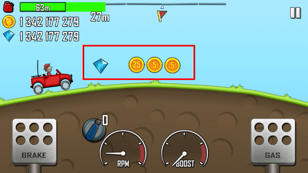 沿途散落的金币构成核心驱动。收集金币用于购买新车与升级部件,强化后的赛车又能驶向更远收集更多金币,形成简单直接成长循环。