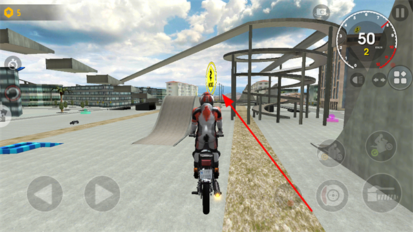 4、驾驶摩托通过螺旋坡道等障碍,保持车速与平衡,完成挑战获取金币奖励。