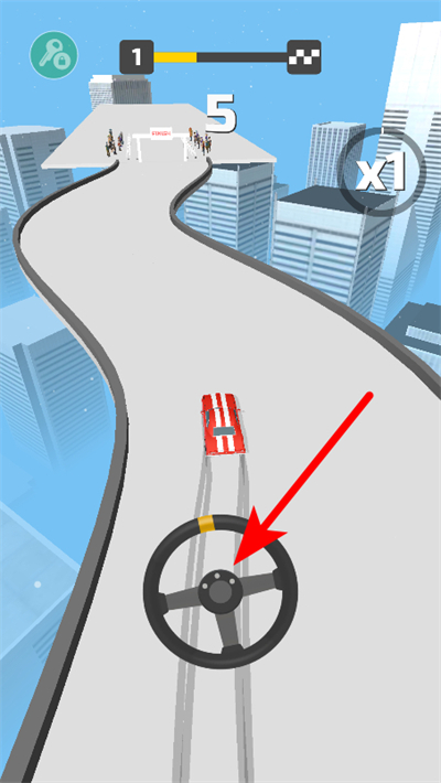 2、行驶过程中,点击屏幕下方的方向盘区域,操控赛车转向,在弯道处完成漂移动作。