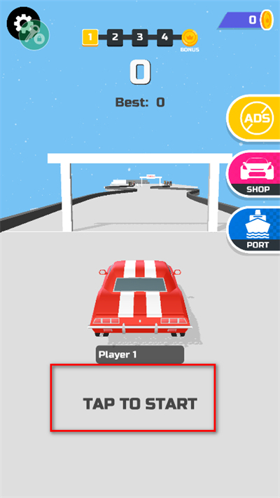 1、进入游戏界面后,点击屏幕上的TAPTOSTART按钮,开启赛车漂移的挑战关卡。
