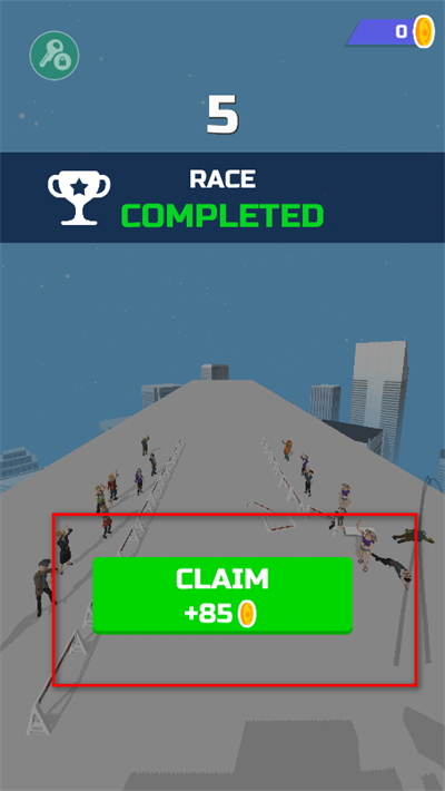 4、完成赛道漂移挑战后,点击CLAIM按钮领取对应的金币奖励,解锁更多赛车外观。