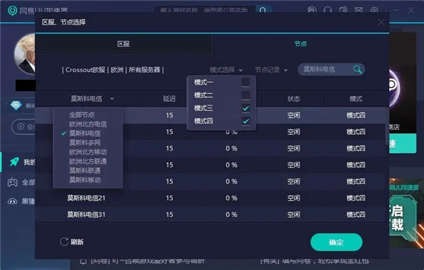 ps:需退出游戏更换节点,或者登录前就把节点选好