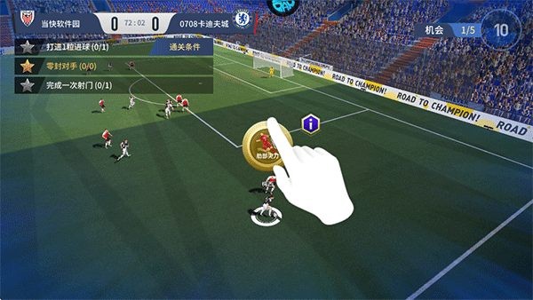 4、指尖操作,通过手指的点击和滑动可以让你的球员完成各种高难度的技巧,指尖可以享受足球的乐趣;