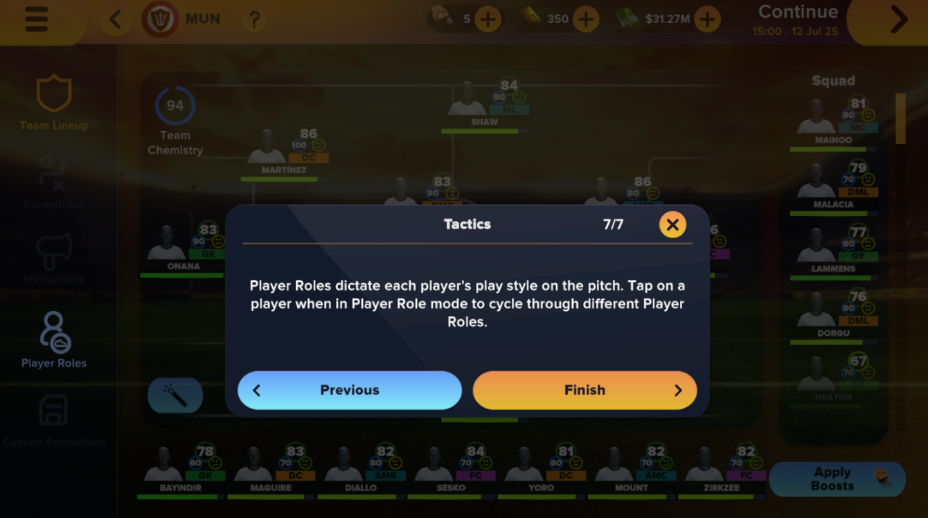 6、增益效果可以立即提升士气、化学反应或体能,甚至可以取消停赛或伤病。它们非常强大但数量有限。将它们留给关键比赛,比如杯赛决赛或冠军赛,因为在这些比赛中能量或士气的差异可能决定一切。每场比赛都使用增益效果会浪费它们真正的价值。从每日奖励、免费礼包和目标中收集它们,以保持紧急情况下的稳定供应。