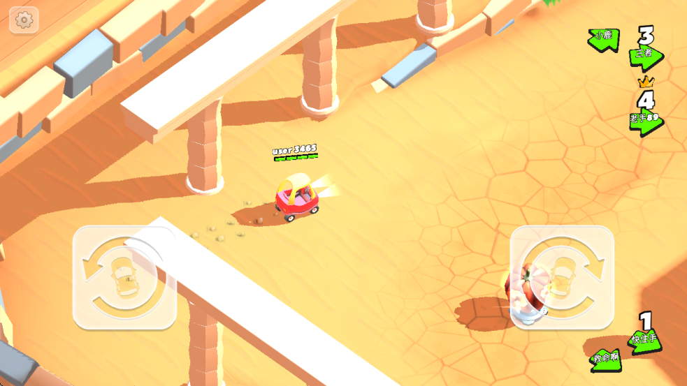 疯狂撞车王是一款清新卡通风格的撞车竞技游戏,在游戏中玩家可通过控制车辆的转向来改变车辆的行驶路线,并操控赛车完成各种各样有趣的挑战。玩家可以在对局中拾取场景内的各种道具,不同的道具拥有不同的效果,如行驶前进、移动射击、摧毁敌人车辆等等,为游戏增添了许多乐趣。同时除了应对来自敌人的道具攻击与车辆撞击的同时,玩家还需要尽可能的收集多的皇冠,最终获取游戏胜利!