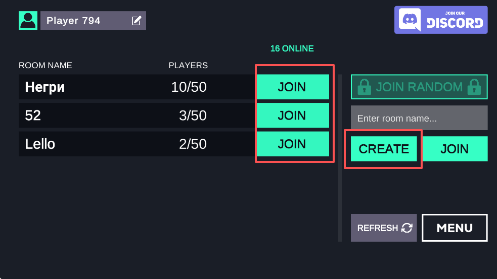 2、待进入新界面后,可以选择左侧的任一房间点击【Join】即可加入该房间,或者点击右侧【Create】创建一个新的房间