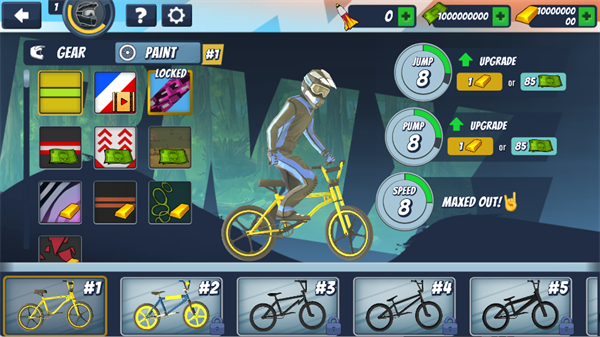 6、获得奖励后,可以前往仓库进行自行车涂装和定制,升级跳跃和泵速属性。此外,你还可以解锁更多的自行车,打造独一无二的竞速风格。