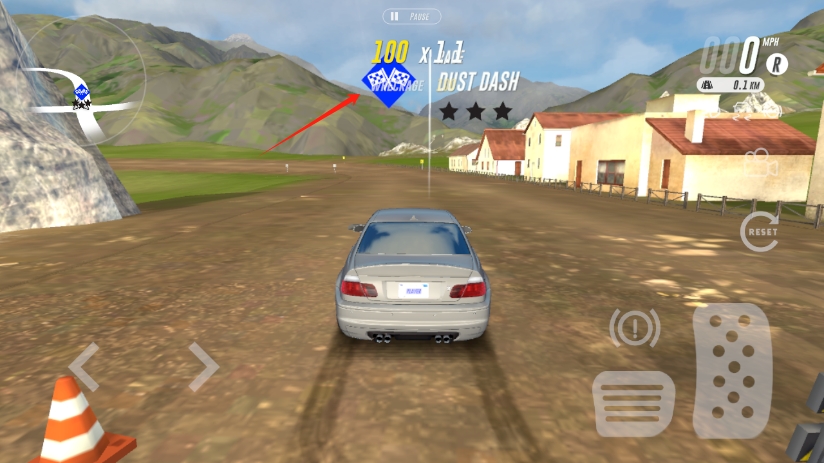 6、现在就开始完成日常任务吧,第一个任务很简单,开车的时候达到那个数值即可完成,第二个任务是完成一次比赛,玩家需要将车开到下图这个地方;