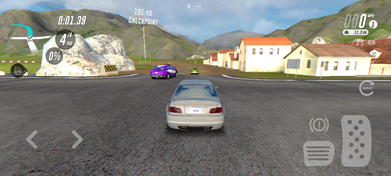 4、点击【DRIVE】,就可以正式进入到游戏中,左边的按钮控制车辆的左右移动,而右边则是油门刹车;左上角可以查看附近的道路地形,右上角可以查看车速;