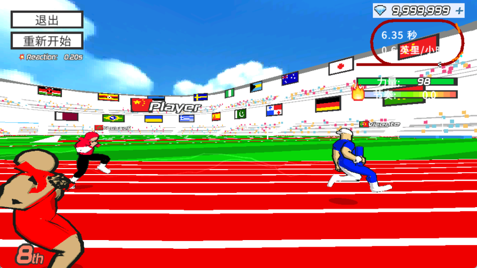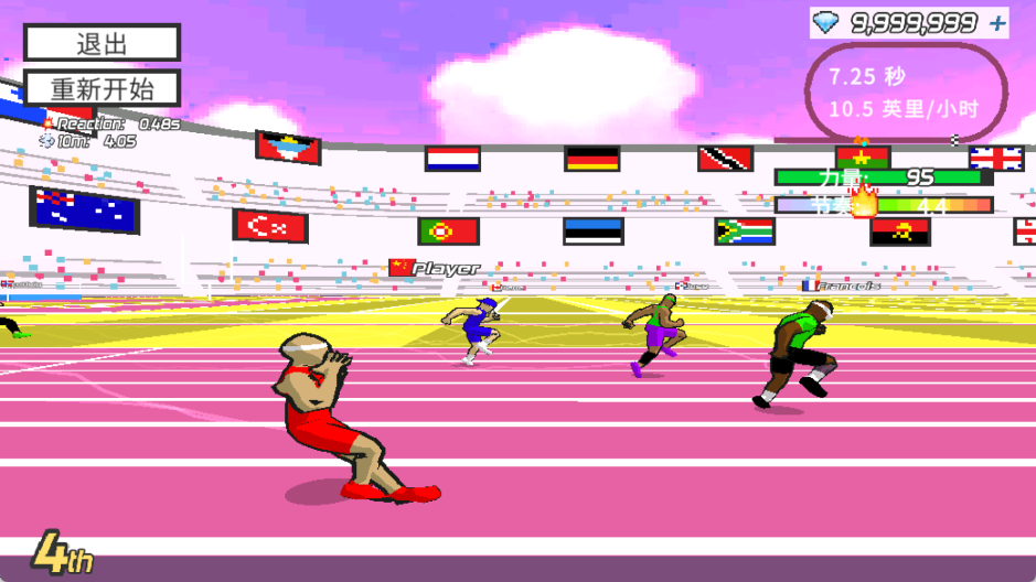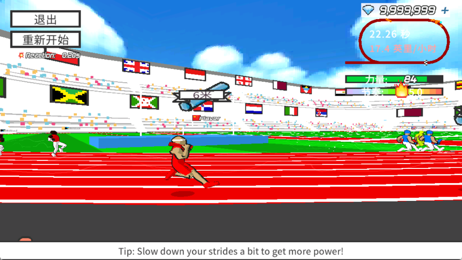 3、在枪声响起前进行预判,按顺序先按左侧按钮,再按右侧按钮启动。起跑时重心要稳,配合节奏控制按键频率。