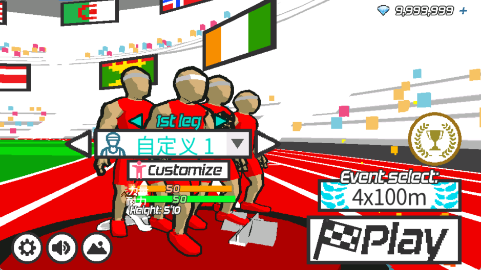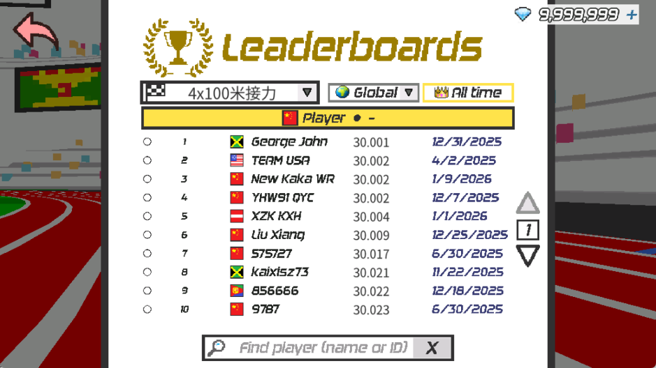 2、游戏内包含多种赛道,例如100米、200米、400米短跑,接力,以及110米跨栏、400米跨栏等。玩家可自由选择想体验的项目,本攻略以[4x100米接力]为例。