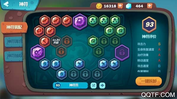 选好角色之后其次就是装配自己的神符,对于神符装配也很重要,神符装配好可以让你在战场中更好的发挥,更好的锤锤捶哟~像神符中有5大级别,分别是1级、2级、3级、4级和5级,每一级别都有红绿蓝紫色,当然等级越高的神符装配越厉害。装配好之后就可以开始锤锤捶大战啦~