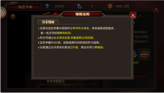⑤ 血色争霸最终根据积分进行排名,积分越高排名越高,所能获得的奖励越高。