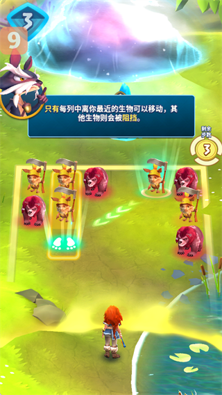 每列仅最前方的生物可移动,后方生物会被阻挡,开局需按【前排输出/肉盾+后排辅助】的思路规划列内布局。