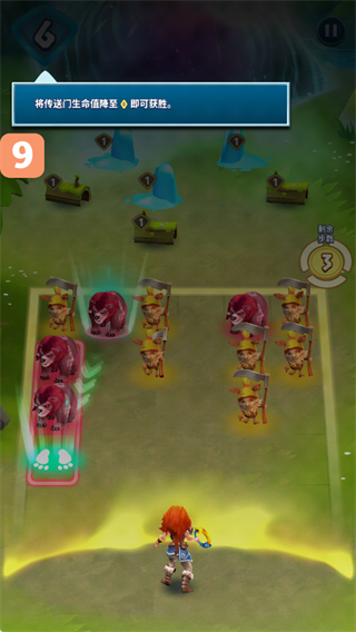 每回合行动次数有限,1次操作消耗1步数,步数耗尽后己方生物自动发动攻击,开局需优先聚焦传送门目标,避免无效操作浪费步数。