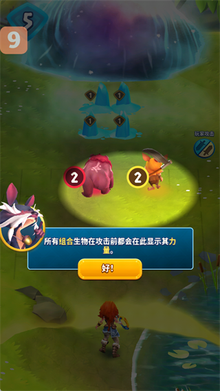 组合生物攻击前显示的【力量】数值,直接决定伤害强度,需优先选择高【力量】组合针对敌人弱点,点击【好】确认后发起攻击。