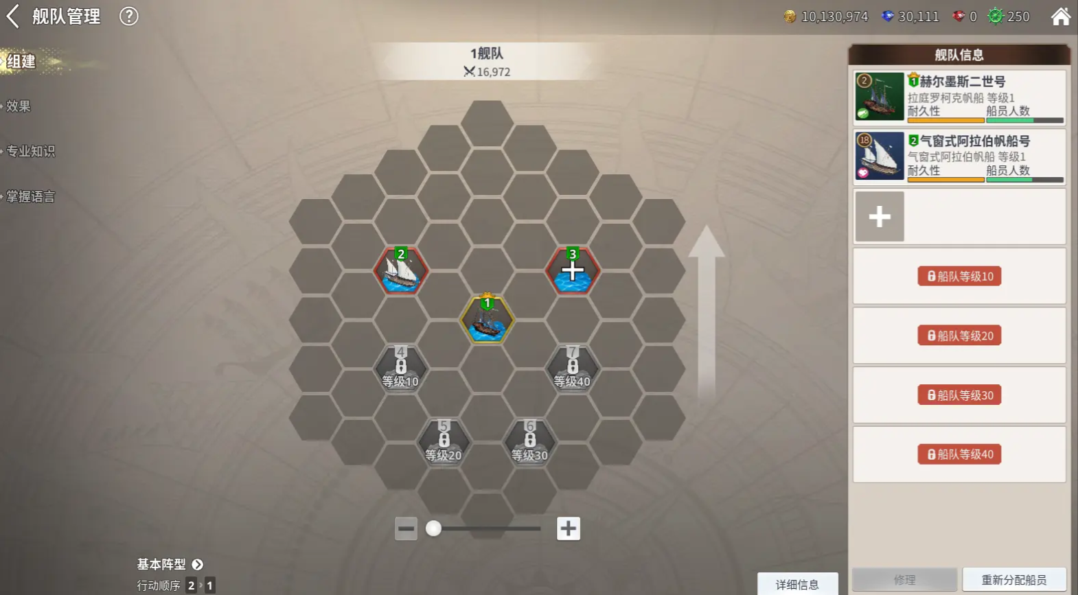 变更舰队阵型与船只配置,实时查看阵型效果及行动顺序;